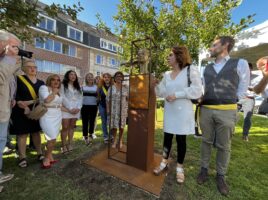 „Omagiu lui Mahsa Amini, drepturile femeii, egalitatea, drepturile omului, împotriva discriminării și terorii. În această dimineață, Woluwe1150 a inaugurat superba lucrare sculpturală a artistului Laurence Remacle, în omagiu adus lui Mahsa Amini, un iranian care a murit în urmă cu un an, pentru că a purtat un voal islamic „inconform”, …