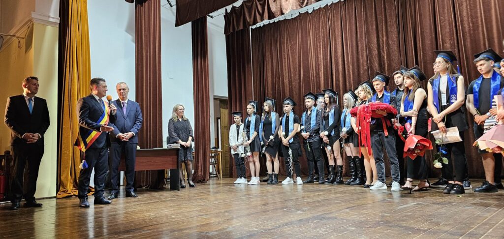 „Les diplômés des deux classes de terminale du lycée théorique « Gheorghe Lazăr » de Pecica ont vécu des moments inoubliables mercredi, sous la conduite des directeurs Claudia Balaș et Ioan Popa, en compagnie de leurs parents, de leurs proches, de la direction de l’établissement, des enseignants et de leurs camarades. J’étais présent à leurs côtés lors de la célébration à la Maison de la Culture « Doru Ioan Petescu », leur souhaitant de trouver leur vocation et leur voie dans la vie », écrit le maire Petru Antal sur sa page Facebook.