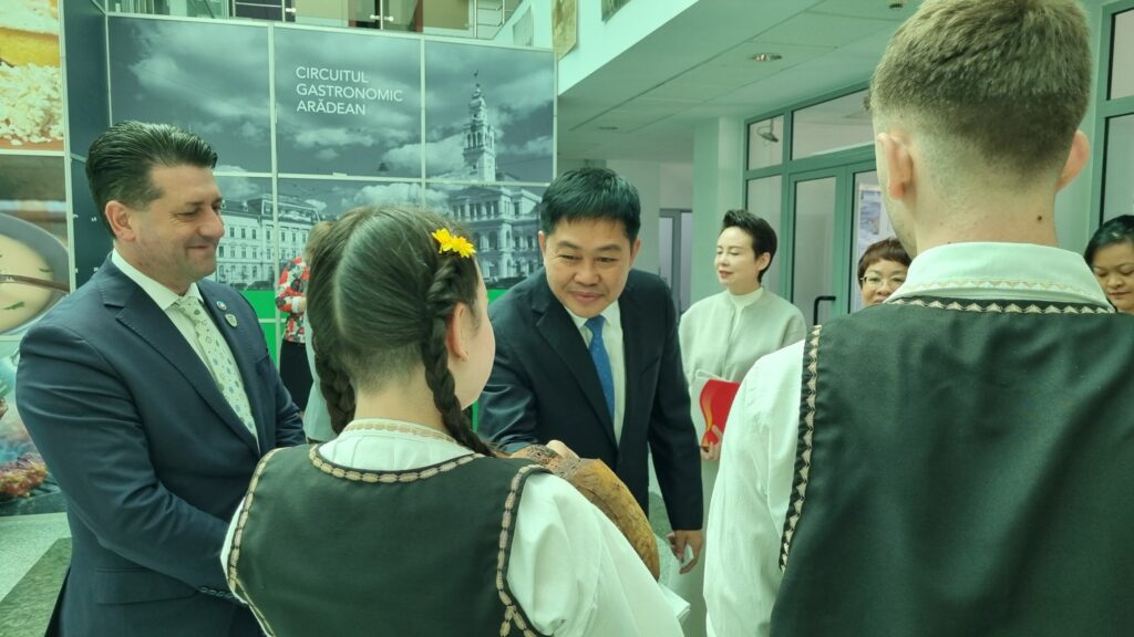 "Les délégations chinoises arrivées lundi 29 avril au Conseil départemental d'Arad ont été accueillies avec de la Pita de Pecica et du sel, offerts par les danseurs de l'Ensemble des Gardiens de la Tradition de Pecica. Nous sommes heureux de promouvoir notre marque locale et de poursuivre la collaboration avec les représentants de la République populaire de Chine, d'autant plus que le premier Club Pro-Chine du pays a été créé dans notre ville. Nous remercions le président du conseil du comté d'Arad, Iustin Cionca, pour l'invitation.