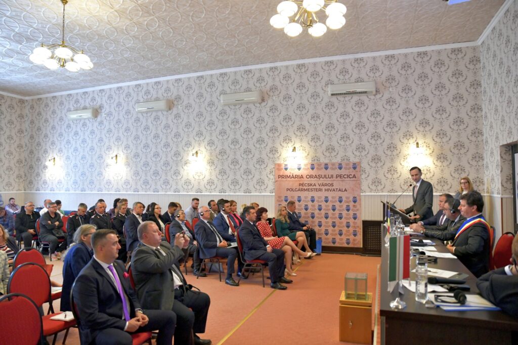« J’ai eu l’honneur d’accueillir, samedi, l’Assemblée générale de l’Eurorégion Danube-Criș-Mureș-Tisa (DKMT), dont le président par intérim est Iustin Cionca, président du Conseil départemental d’Arad. Des représentants des comtés d’Arad, Timiș, Caraș-Severin, de Roumanie, des comtés de Bács-Kiskun et Csongrád-Csanád, de Hongrie, et de la province autonome de Voïvodine, de Serbie, membres de la direction du DKMT, se sont rencontrés face à face pour la première fois après la pandémie, pour échanger sur des projets entamés les années précédentes et suspendus en raison des conditions sanitaires” – écrit le maire Petru Antal.
