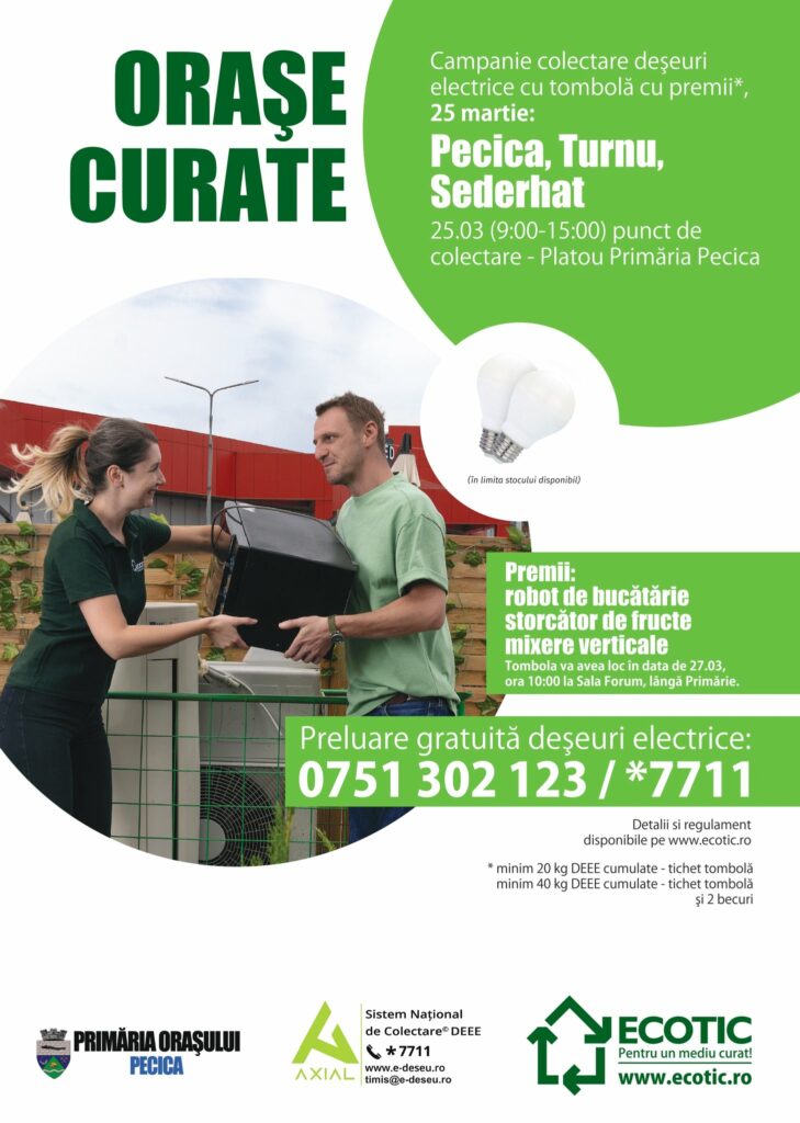 Primăria Orașului Pecica şi Sistemul Național de Colectare DEEE, împreună cu ECOTIC, organizează o nouă campanie de colectare a deșeurilor de echipamente electrice și electronice (DEEE).