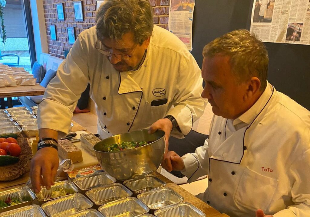 Primarul Benoît Cerexhe Bis pregătește mâncare pentru cei nevoiași împreună cu Salvatore Toto Bongiorno și Le Rdv Des Amis.