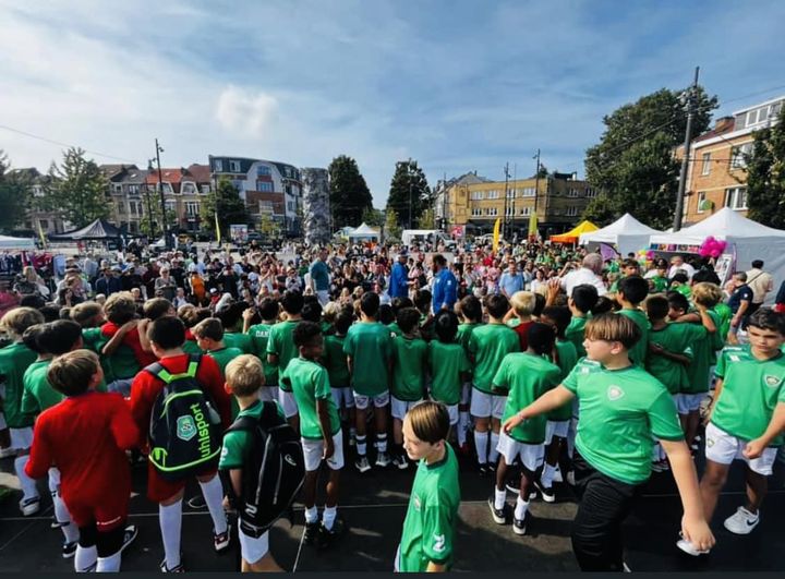 Tous les footballeurs du ROFC Stockel réunis dimanche à la place Dumont en présence de l’excellent bourgmestre Benoît Cerexhe Bis.