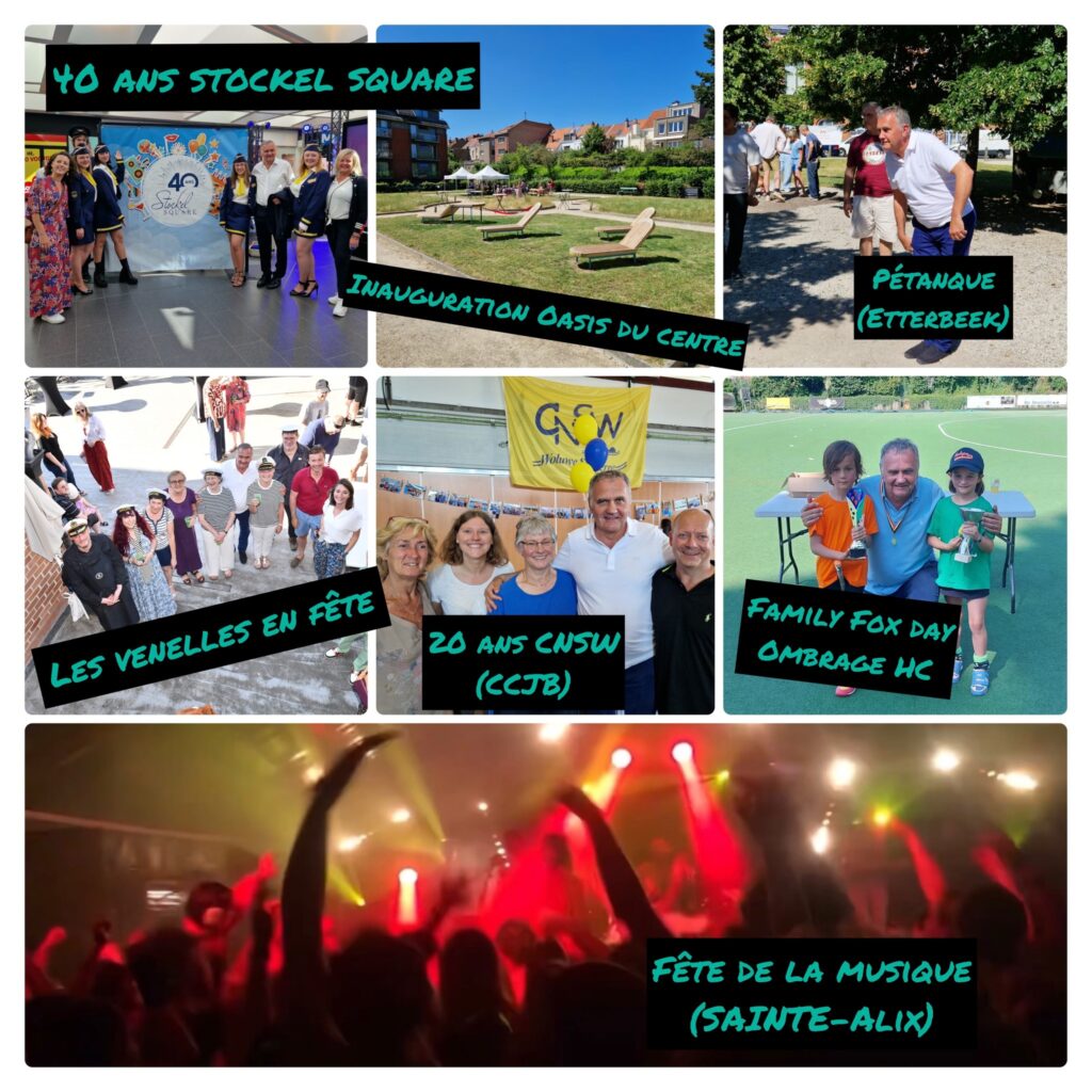 Programme: inauguration de l’Oasis du Centre (Parc de la Roserais des Mariés), pétanque à Etterbeek à l’invitation de Vincent De Wolf, la fête des 20 ans de notre Club de natation CNSW, remise des médailles de notre école de mini-tennis ATA etc.