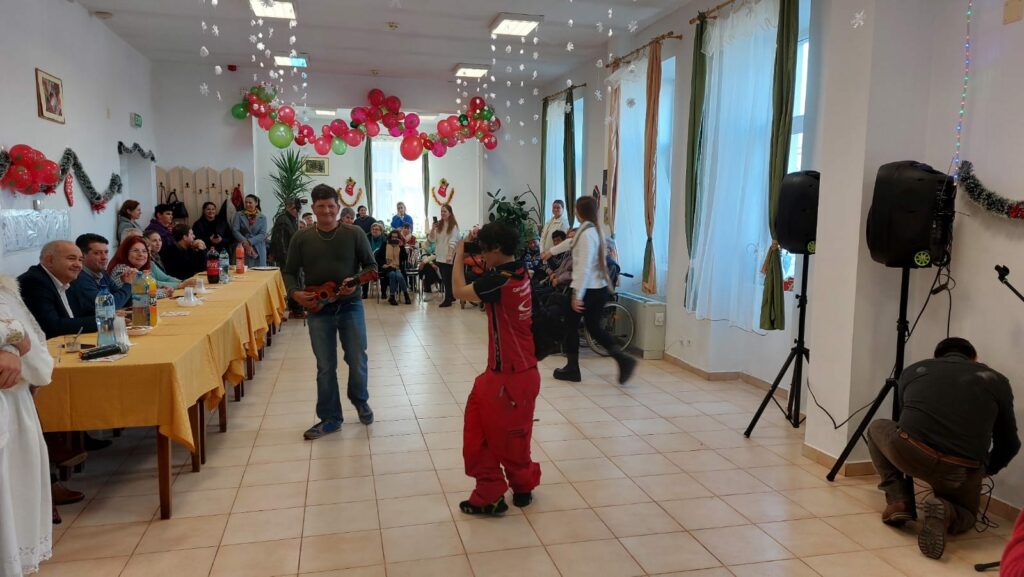 „De Ziua Internațională a Persoanelor cu Dizabilități, atmosfera sărbătorilor de iarnă a cuprins Centrul de Îngrijire și Asistență Pecica.Am asistat, alături de doamna Erika Stark, directoarea Direcției Generale pentru Asistență Socială și Protecția Copilului Arad, viceprimarul Miodrag Stanoiov, membri ai Consiliului Local Pecica și angajații instituției la momentul pregătit, cu bucurie și emoții, de pacienții internați aici. Programul a fost întregit de spectacolul prezentat de soliștii și dansatorii de la Ansamblul Păstrătorii Tradiției din Pecica. Să ne pregătim cu toții, sufletește, pentru sfânta sărbătoare a Crăciunului!” – scrie primarul Petru Antal pe pagina sa de socializare.